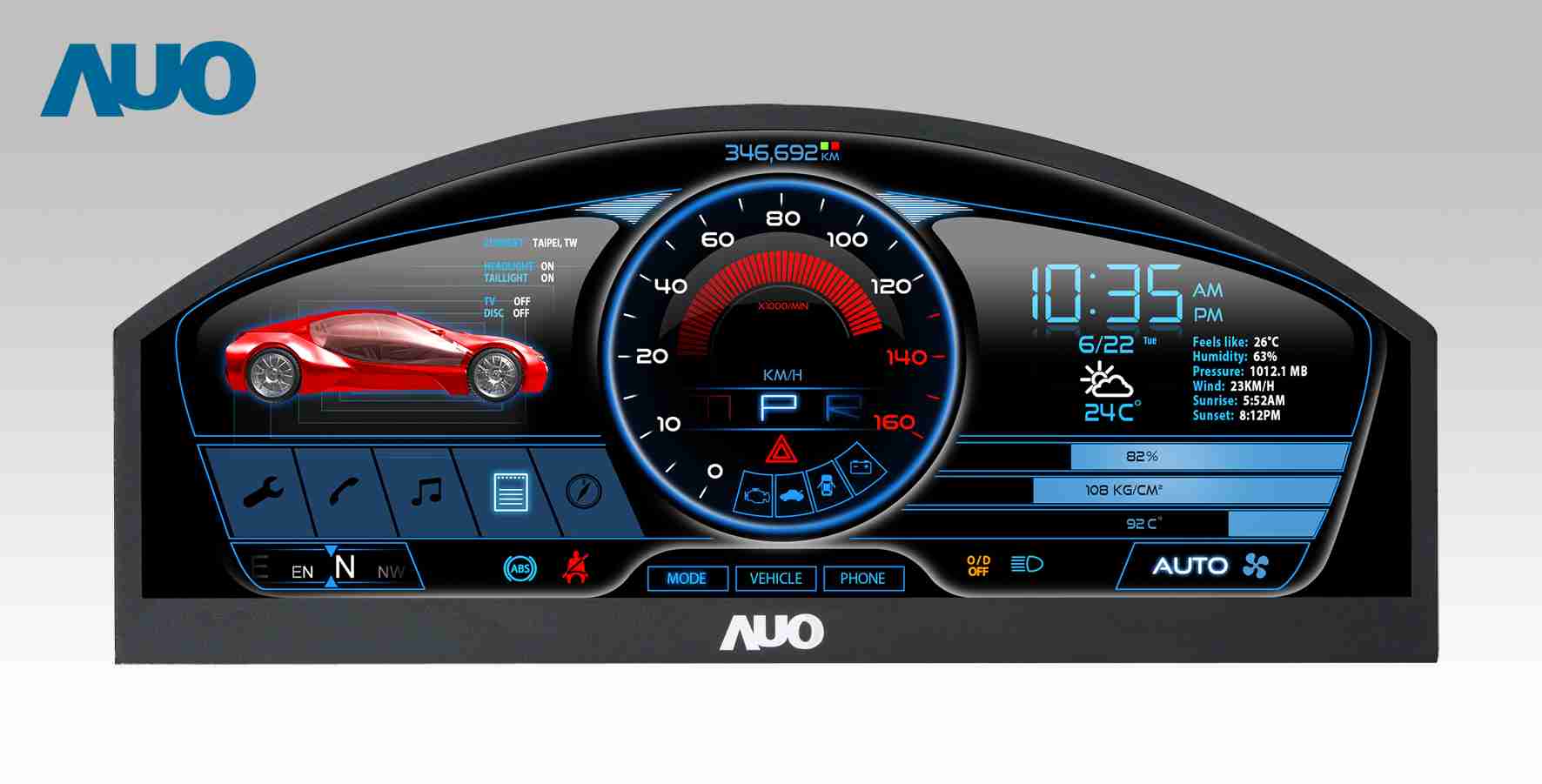 万利 12.3吋超高解析异型切割车用面板,,,拥有流线外观及精细画质